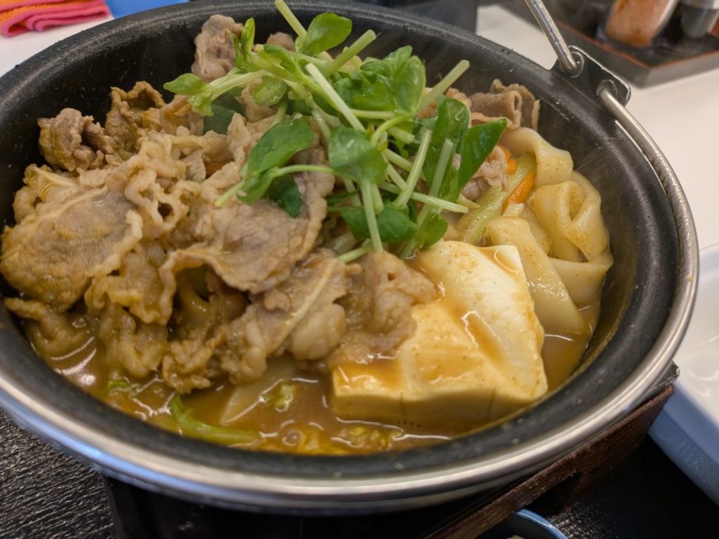 よしぎうでカレー牛鍋。これゴハンとお新香が付いて935円くらい。最近は外食が高くなったけど、「俺がこれを売る側だったらいくらぐらい欲しいかな?」と考えてみるとまだ全然安いなという気にもなる。俺なら2,000円くらい出してほしい。いくらオートメーション化が進んでいるとはいえ1,000円くらいなら帰ってくれと言いたくなる