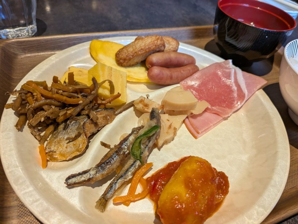 ここのホテル、朝食バイキングが美味しいんだよな、このあとごはんおかわりしてカレーにタマゴと納豆と焼きタラコ乗せて食べた
