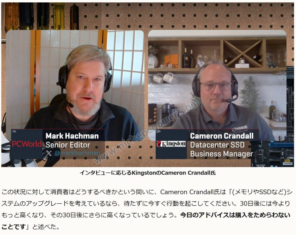 いやーメモリの値上げがとんでもねーことになってるな、こないだ社員用のマシンをスペック盛り盛りで買ったのでウチは3,4年くらいは大丈夫だけど、携帯用ゲーム機やスマホの価格にも直撃しそうなので、高みの見物というわけでもない
