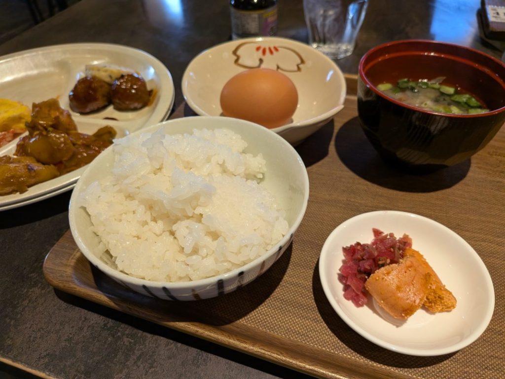 朝食バイキングはなかなか豪華でよき。このあとカレーに生卵乗せて食べたし