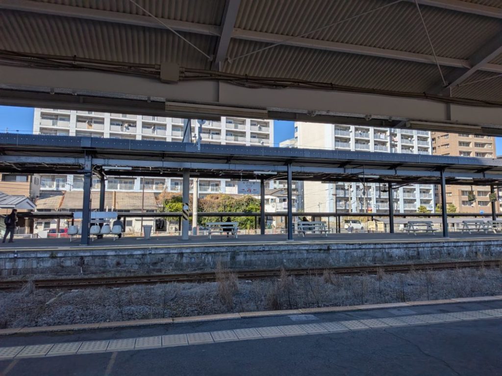 これは鹿児島中央駅で降りるべきところを鹿児島駅で降りてしまい次の電車まで30分あって途方に暮れているところ