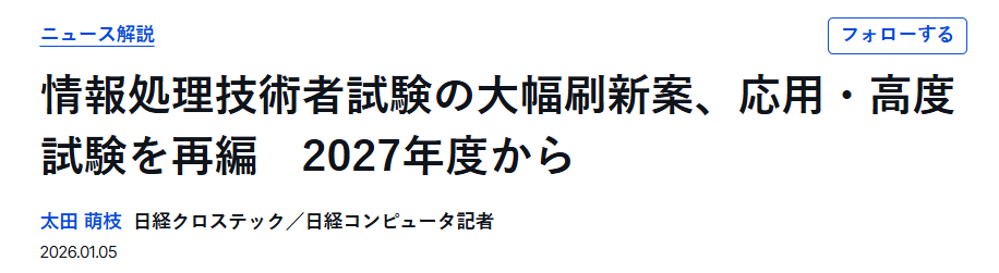 朝からこのニュースでひっくり返りそうになった。もしこのニュースが本当なら、データベーススペシャリスト試験が無くなる可能性が高い。来年が最後の試験になってしまう。