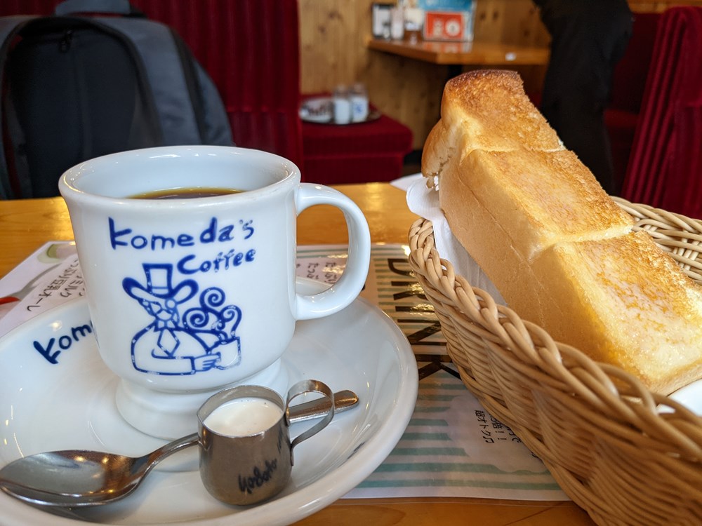 ここの店舗は初めてなので、注文時にうっかり黙ってると、ミルクが付いてトーストにバターが塗られて届く。