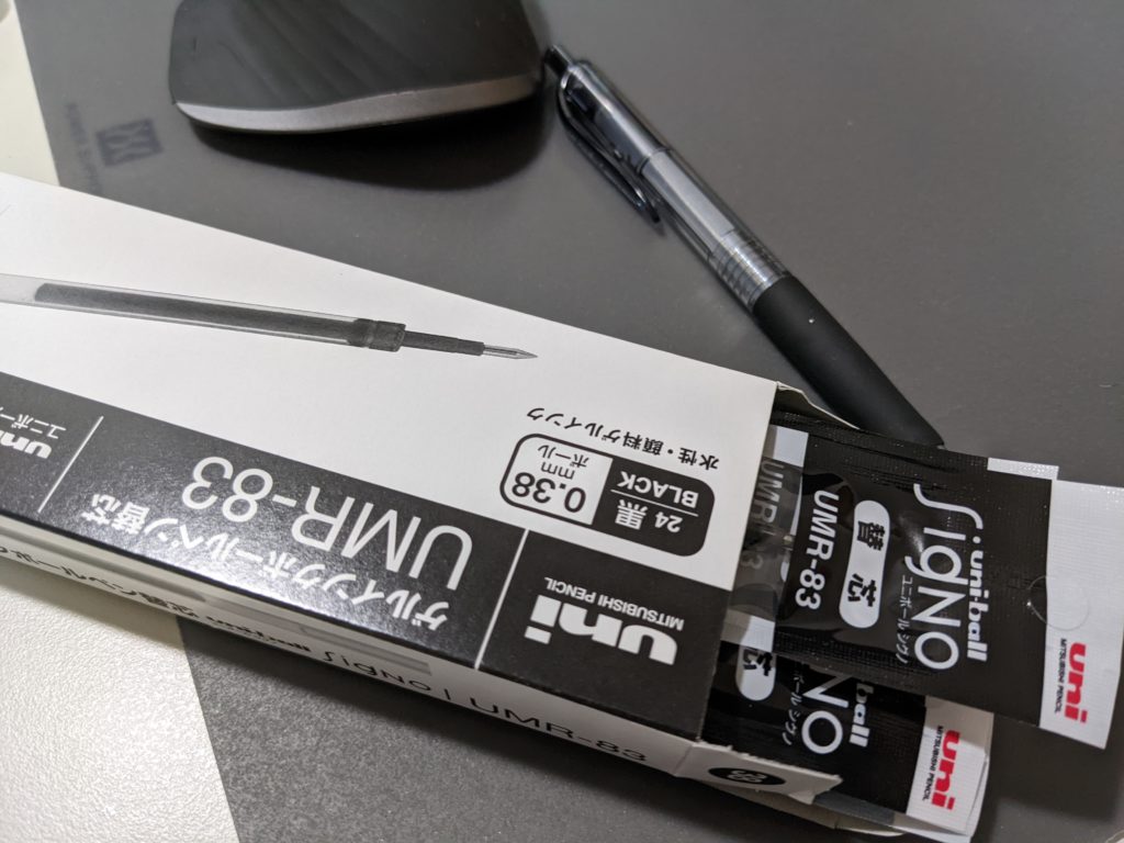 ボールペンを使い切り達成感。替え芯はハコで持ってる。