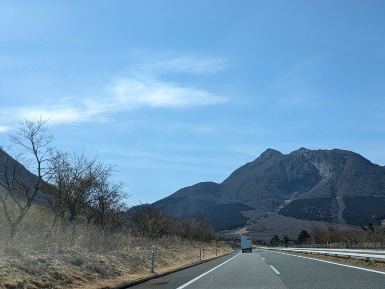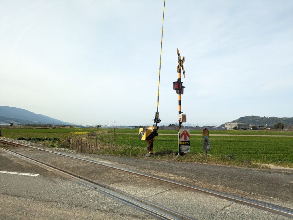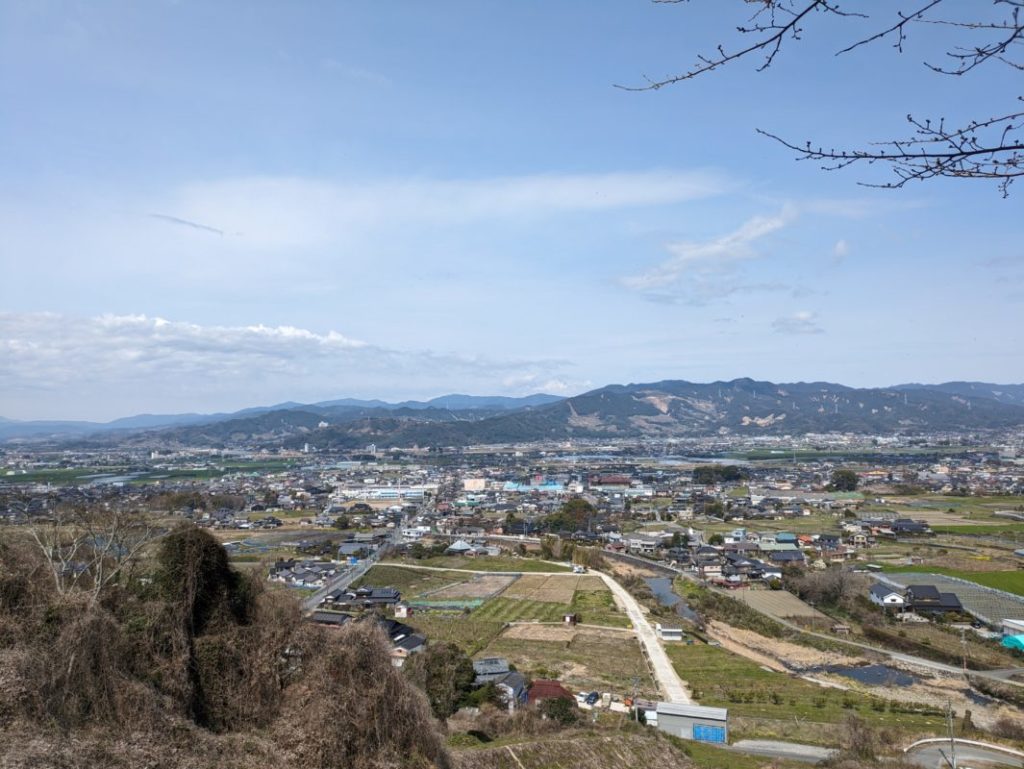 良い景色。遠くの山肌がすこし見えてるところは、いつぞやの地震の跡なんだって。さっきの踏切のあたり「がんばろう朝倉」みたいな看板があったのを思い出した。今日はちょうど3.11だな。