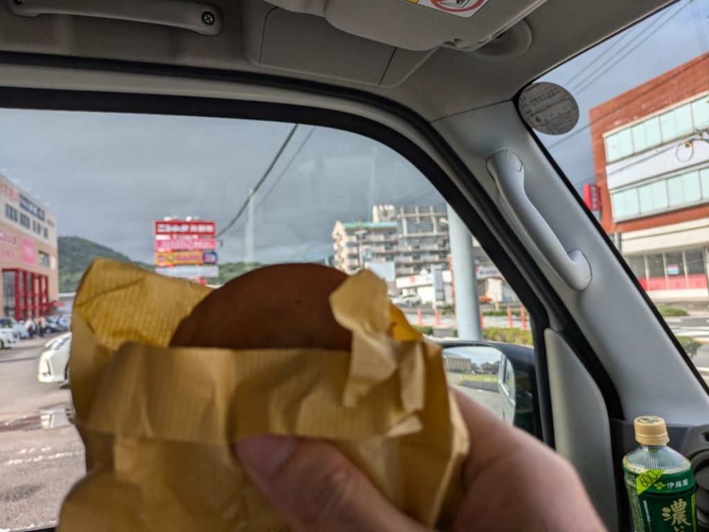 黒あんとカスタードをひとつずつ買い車内で食うなど