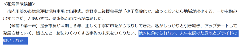 そう言えばこの辺りの表現について非常に評判が悪く、微妙に票に影響したかもしれないと思うほど。そこは少なくとも表向きにでも「市民のために」でしょうよと思ったけど、記者さんがわざと載せたのかもなとも思った。