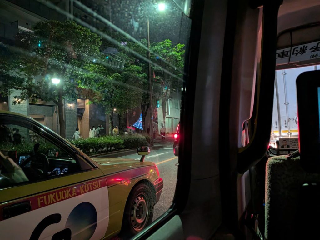 博多駅からの臨時バスが大行列で乗れなかったけど、臨時ではない通常のバスにはサクッと乗れた。でもすし詰め