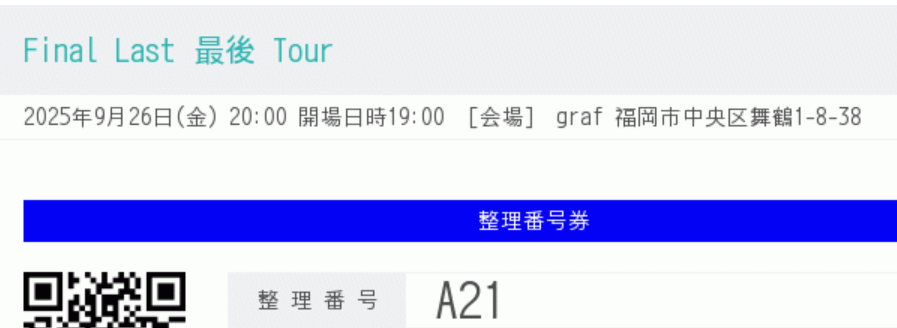 ぬあ~Deep Sea Diving Clubのラストライブのチケット当たった!これも運を使った!A21って割と前の方の予感・・・。試験前タイミングなので勉強やっておこう!最終バスもソニックも間に合わないと思うので泊まりだな