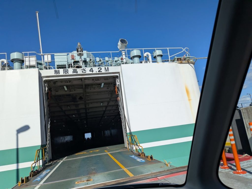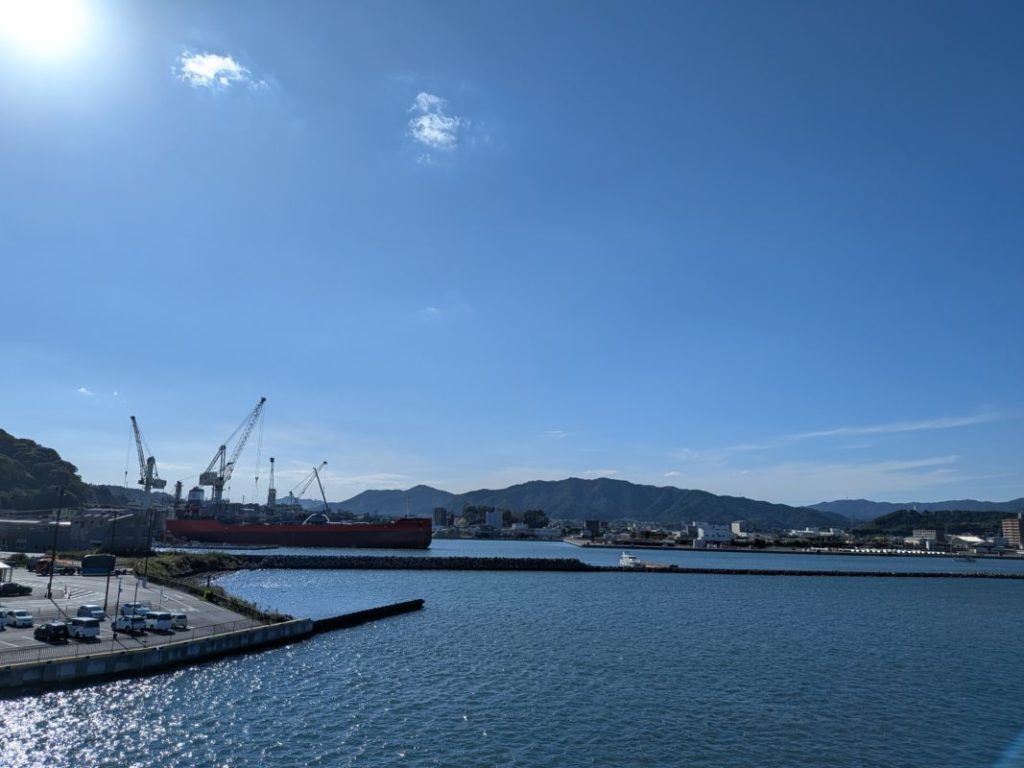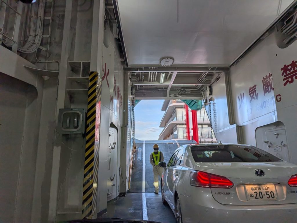 フェリー乗り場が新しく移設されてて、たまたま看板を見かけたのと前の車が高知ナンバーだったから着いていったらアタリだったw レンタカーのカーナビだと古い方に行ってた