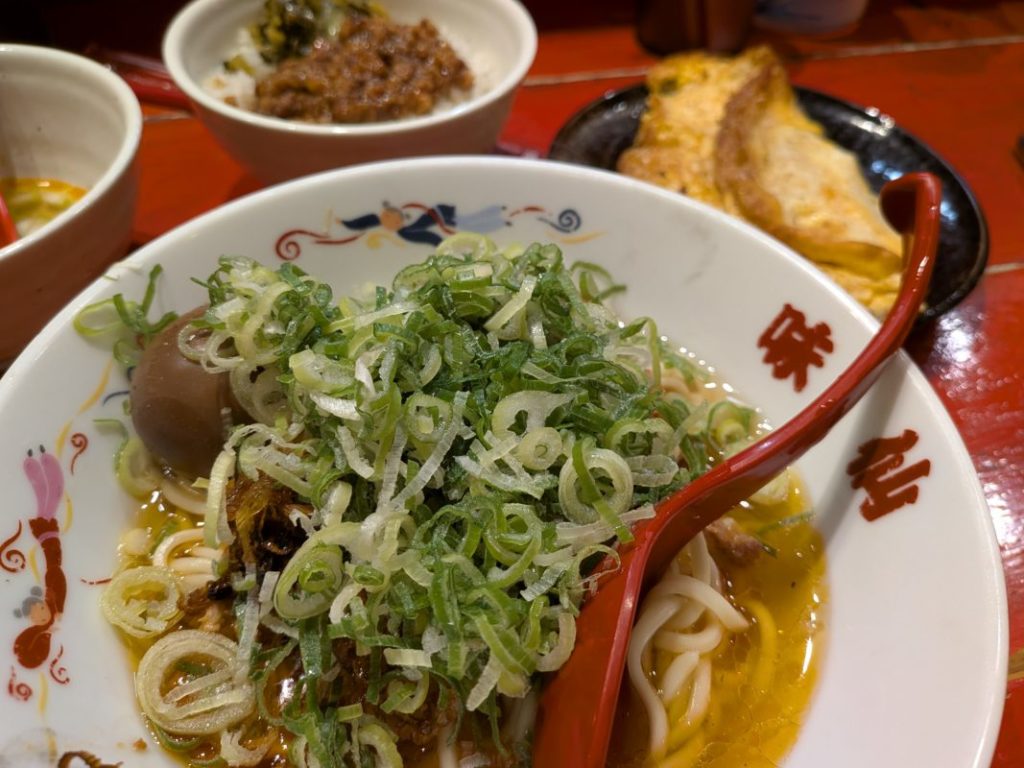 その佇まいに妙に惹かれる変な店があるなぁと思って入り(変だと思って入ったんかい)変なメニューを頼んだところバッチリ変なものが出てきた。「心斎橋で30年間愛されどうのこうの、昼に食べたらまた夜に食べたくなる」みたいなコピーもおかしい。葱ナンチャラ麺とかゆーのを頼んだところ魯肉飯と台湾風玉子焼き(写真右奥)が付いてきて、完全に台湾メシの文脈だった。味もかなり意味が分からなかった。店員さんも台湾の方だったのかな、すごい丁寧な接客だった。この味でこの良い立地に店を出して続いてるのもかなり謎。東京でゴハンを食べると時々なぜか悲しい感情になってしまうことがあって今日これを食べててそれになった。なぜなのか全然分からない。
