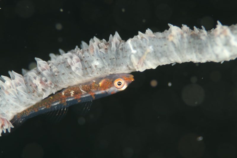 ガラスハゼ。ダイビングがヘタクソだと砂を巻き上げてしまいこのように背景に砂が写り込んでしまう。それ以外はまぁ悪くない。ここにアップした写真はどれも圧縮したもので分かりづらいけど、元画像は透き通った体がキレイに写せている