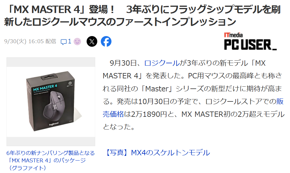 4が出たのか。しかしマウスがとうとう2万超え・・・。こないだ3sを買ったばかりという事もあり少し様子見かな。