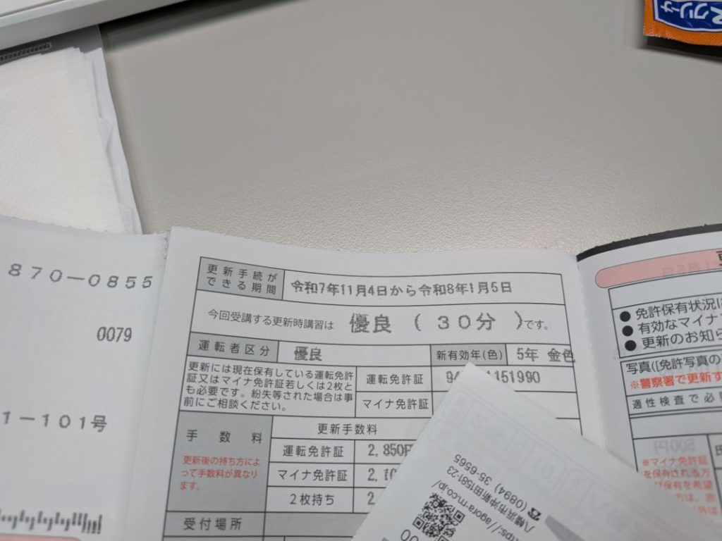 免許の更新案内が届いていた。ずっとゴールドなのだ
