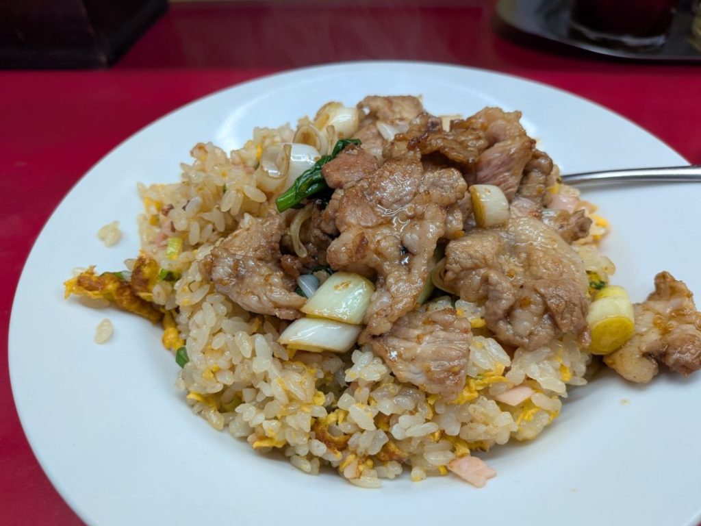珍しく昼時にすぐ座れそうだったので新珍味で肉乗せチャーハン。麻婆豆腐も食べたけどそれはまぁ普通の家庭の味って感じだった