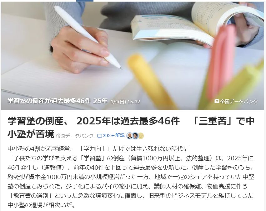 マジで学習塾はキツそう